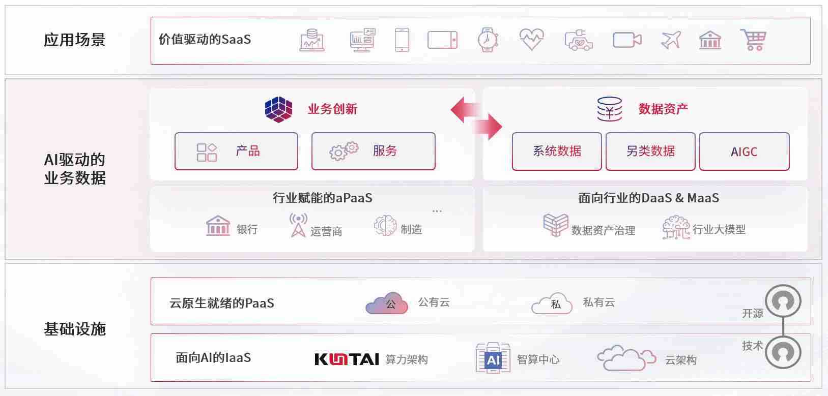 数字时代,,,,围绕企业数字化转型的关键要素,,,,J9.COM数码开创性的提出数云融合战略和技术体系框架,,着力在云原生、、、、数字原生、、、、AI原生和信创产业上架构产品和服务能力,,,为处在不同数字化转型阶段的快消零售、、汽车、、、、金融、、、、医疗、、政企、、、教育、、、、运营商等行业客户提供泛在的敏捷IT能力和融合的数据驱动能力,,,,构建跨界融合创新的数字业务场景和新业务模式,,助力企业级客户建立面向未来的核心能力和竞争优势,,,全面推动社会的数字化、、、智能化转型升级。。。。