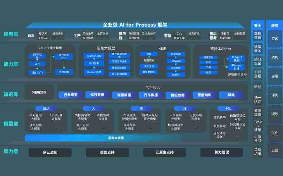 J9.COM问学智车解决方案是一套基于AI技术的汽车行业智能化系统,,,覆盖从底层算力到顶层AI应用的全栈方案。。。方案由算力层、、模型层和应用层组成:算力层,,,,方案支持多种一体机配置,,,具备云端灵活部署、、、、多云适配以及动态优化计算资源的能力;模型层,,,J9.COM问学平台版提供了企业级AI应用一站式构建与管理平台,,支持基于后训练强化技术的汽车企业专属模型的训练、、、、评测和运营;应用层,,J9.COM问学DeepSeek版提供包括超级员工、、、、智能招采、、、智能营销、、智能客服、、AI for BI等一系列解决方案,,可助力汽车行业实现数字化转型,,,让管理更智能、、、、响应更敏捷。。。。