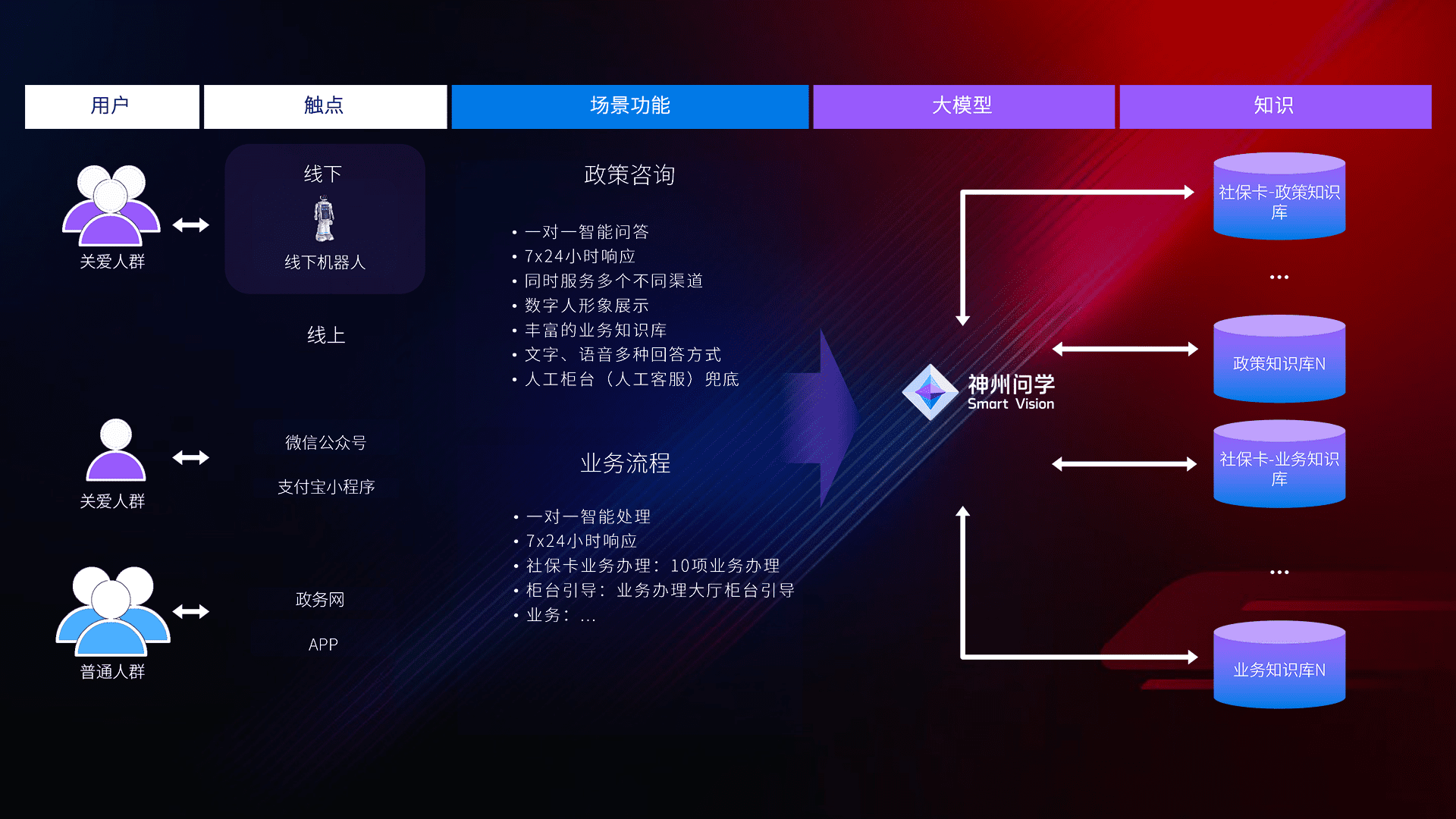 在服务大厅部署客服机器人,,,,在线上应用和小程序配置客服数字人,,,724小时为群众解答常规问题,,,客服机器人无法处理的,,,,转现场人工处理。。。