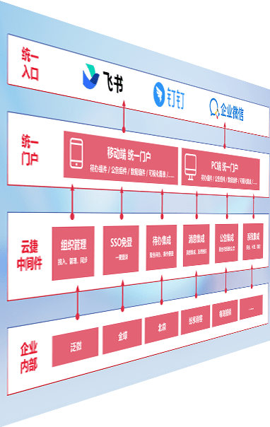 对协作平台提供支持服务,,支持企业应用与协作平台对接,,,,包含组织同步、、消息集成、、待办集成等。。。。支持目前主流的协作平台:钉钉、、、、企微和飞书。。